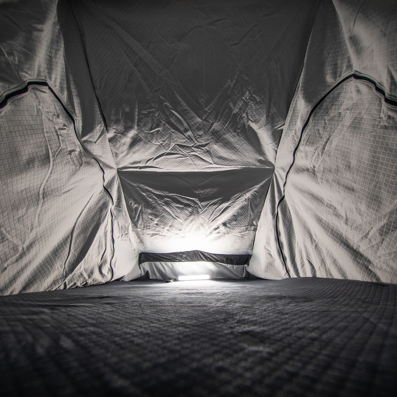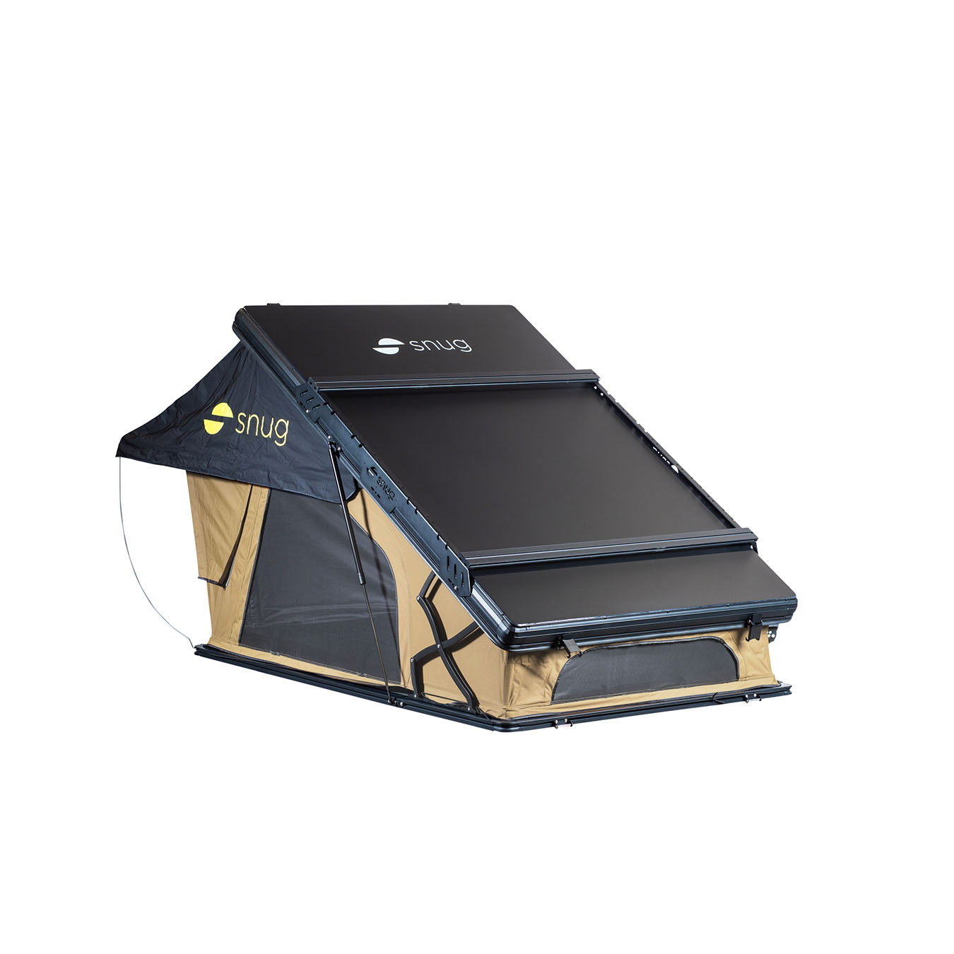 La JURA associe une coque rigide en aluminium alvéolaire à une ouverture assistée par vérins à gaz, pour un déploiement rapide et intuitif. Elle est équipée d’une toile Blackout total de 320 g/m² et d’un sous-matelas anti-condensation.